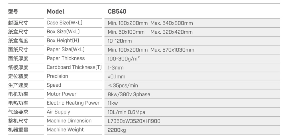 可实现封面纸盒一机多用,既可以满足客户日常封面(皮壳)产品的生产需求,又可以完成酒盒面纸和纸板的错位定位,也可以解决纸盒与面纸的高精度定位工艺要求,有效提高客户生产效率,优化并发挥机器的最优产能。其具有生产速度快、需要人工少、成品美观精致、定位精度高等特点,可以广泛应用于制作精装书封面、笔记本、文件夹、台历、挂历、包装礼盒(包括手机盒、礼品盒、 化妆品盒、鞋盒、 饰品盒等)等领域。